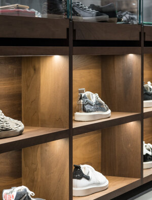 Haute Material, arredi su misura realizzati in noce canaletto termotrattato.